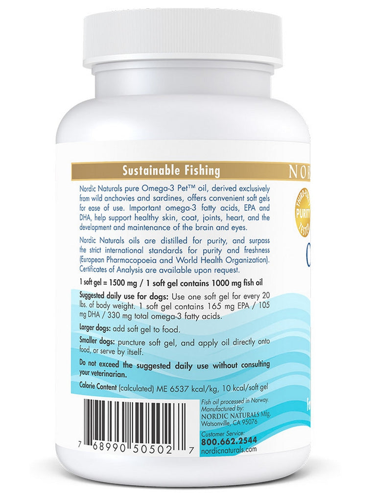 Nordic Naturals Omega-3 Pet Soft Gels product is also an excellent source of the omega-3 fatty acids EPA and DHA. It is an important supplement to help support optimal pet health. This product is offered in convenient soft gelatin capsules for home use and traveling with your pet companion.