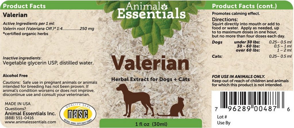 Animal Essentials Valerian Herbal Extract supports a restful state for your dog or cat. Made with only the finest organic Valeriana officinalis root available, known for it's calming support. This liquid herbal extract is alcohol free and formulated with a sweet vegetable glycerin for easy administration. Featuring a simple, single herb formula.