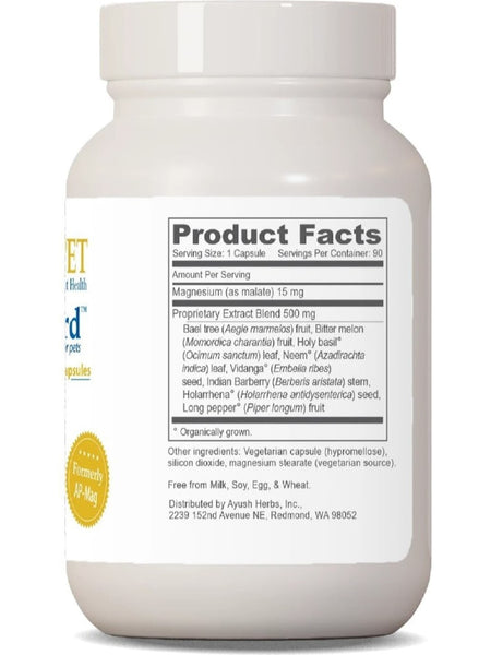 Pet AP-Guard (formerly AP-Mag) is a powerful herbal preparation for support and maintenance of pet gastrointestinal health. The combination of Aegle marmelos, Azadirachta Indica (Neem), Piper longum (pippali), Momordica charantia (bitter melon), Ocimum sanctum (holy basil), and Berberis aristata has been used for centuries in Ayurveda for their ability to assist in cleansing the colon of unwanted pests.